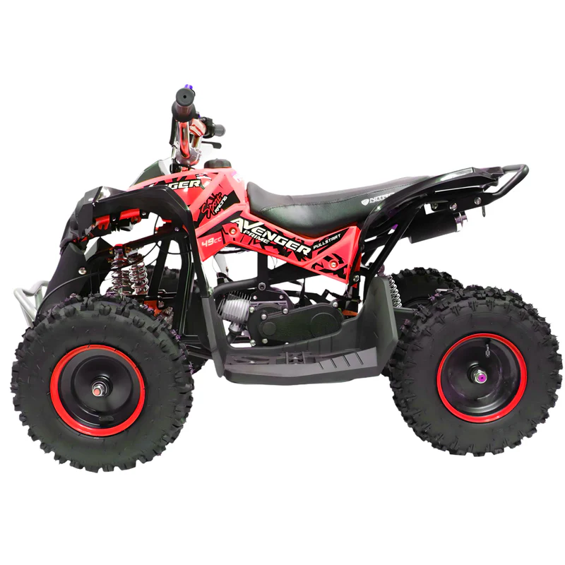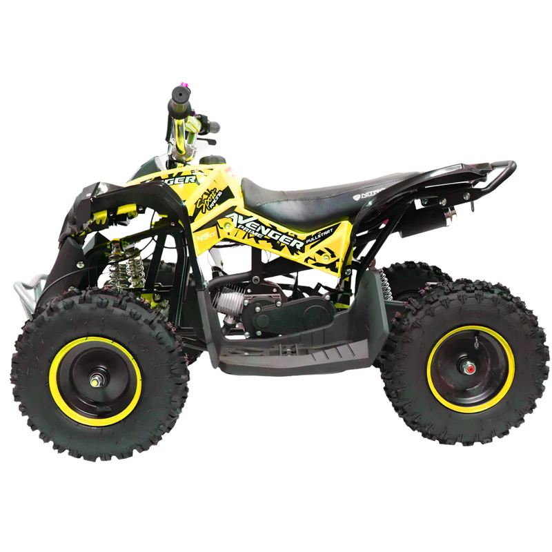 Il Mini Quad AVENGER 50cc, con motore 2 tempi raffreddato ad aria, è veloce, divertente e sicuro per tutte le età. Con avviamento Easy Startcarburatore migliorato e regolatore di velocità, garantisce ottimo divertimento.